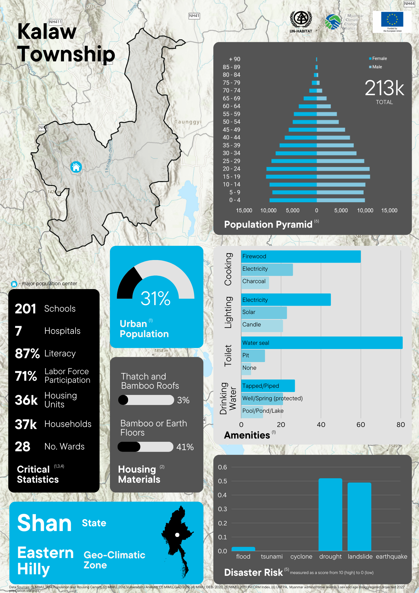 Above you can find an overview of general information about the township including statistics on demographics and access to various amenities. The following map additionally displays geo-spatial data from the township. Try turning on and off the different layers to explore more about the township!