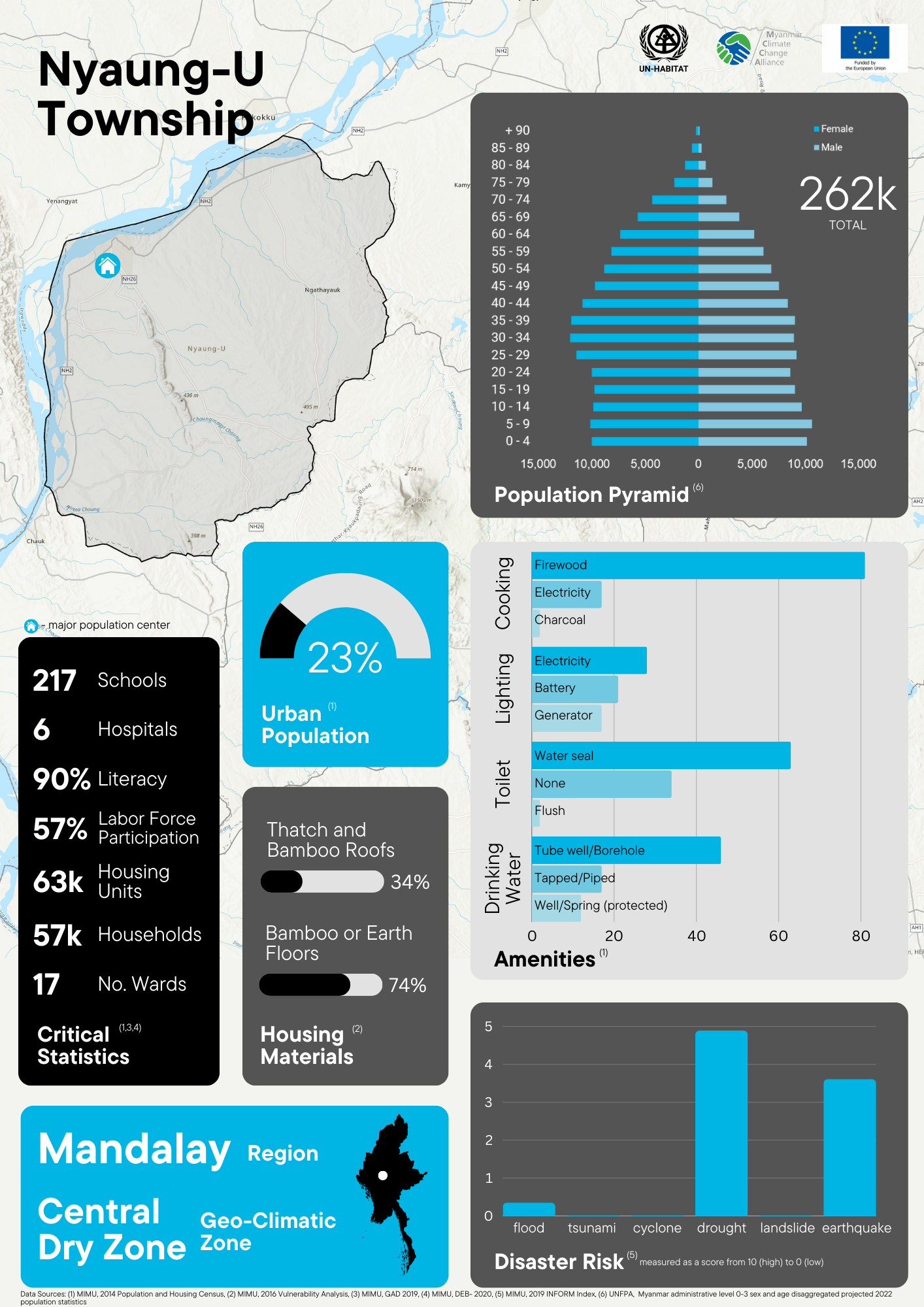 Above you can find an overview of general information about the township including statistics on demographics and access to various amenities. The following map additionally displays geo-spatial data from the township. Try turning on and off the different layers to explore more about the township!